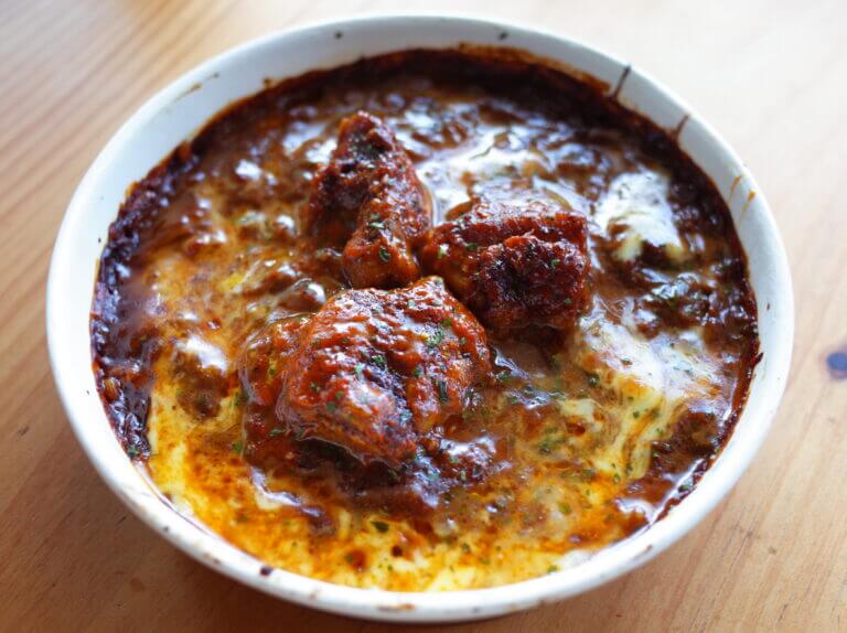 見てください!ゴロゴロっとしたタンドリー風チキンがめっちゃおいしそうです。黄色味の強いとろけたチーズとカレーのコントラストも素敵な見栄えを演出、ほのかにかかったパセリもいい味出しますね、見た目大事です。