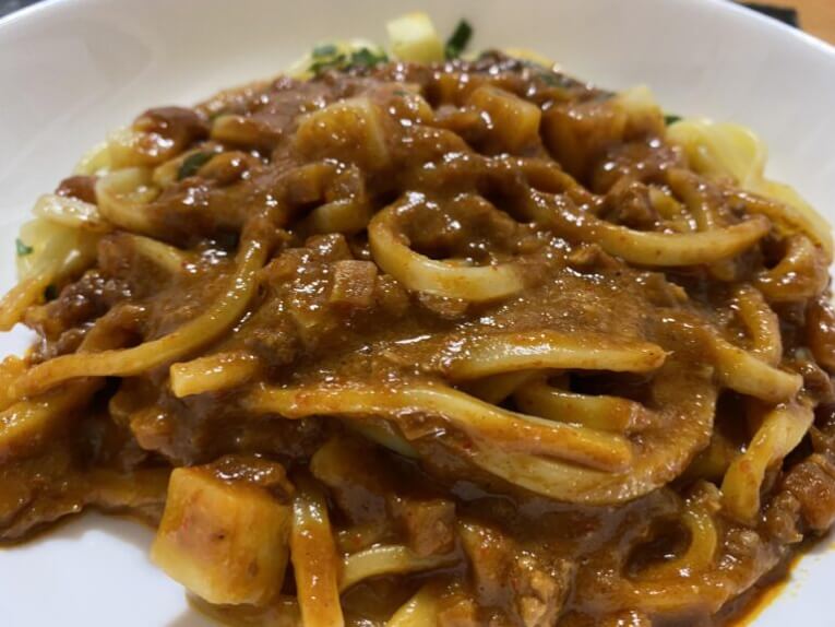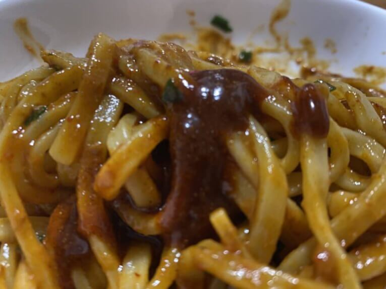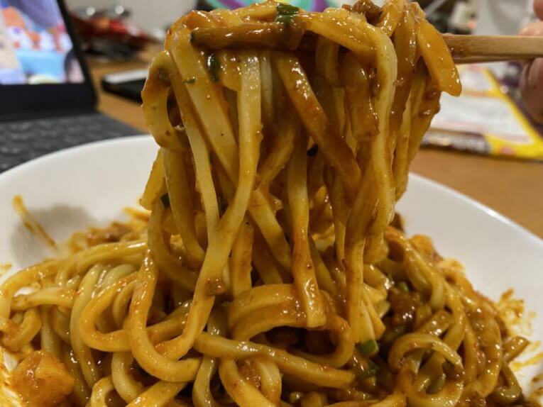 麺がモッチモチ!茹でる麺もいいですが、チンする麺もいいですよね。そして、最初からソースと絡みまくっているのも最高です、いや最辛ですよね、こちらの場合。早速食べてみると、鼻から香ばしいカレーの香りがして、一口目もカレーの味、おいしい・・うまい・・だけど、ジワジワ。きたきたきたーーーかれーーーー辛いよ!辛すぎる!でも、辛いのって止まらないですよね、箸が。