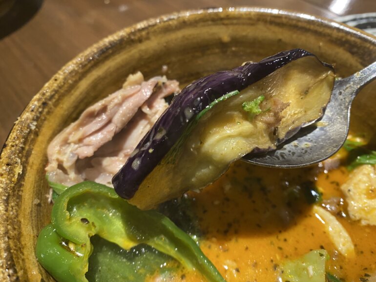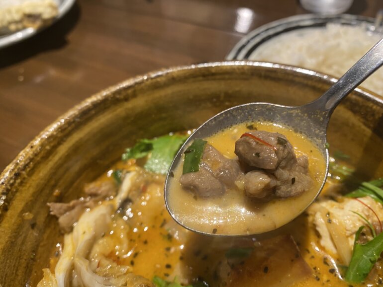 スープがめちゃくちゃおいしかったです!絶対に、あの圧力釜の力も入っているとしか思えないほどうまい。そしてそこにラムや、野菜の旨味が凝縮されてスープとコラボしてさらにおいしくなっています。