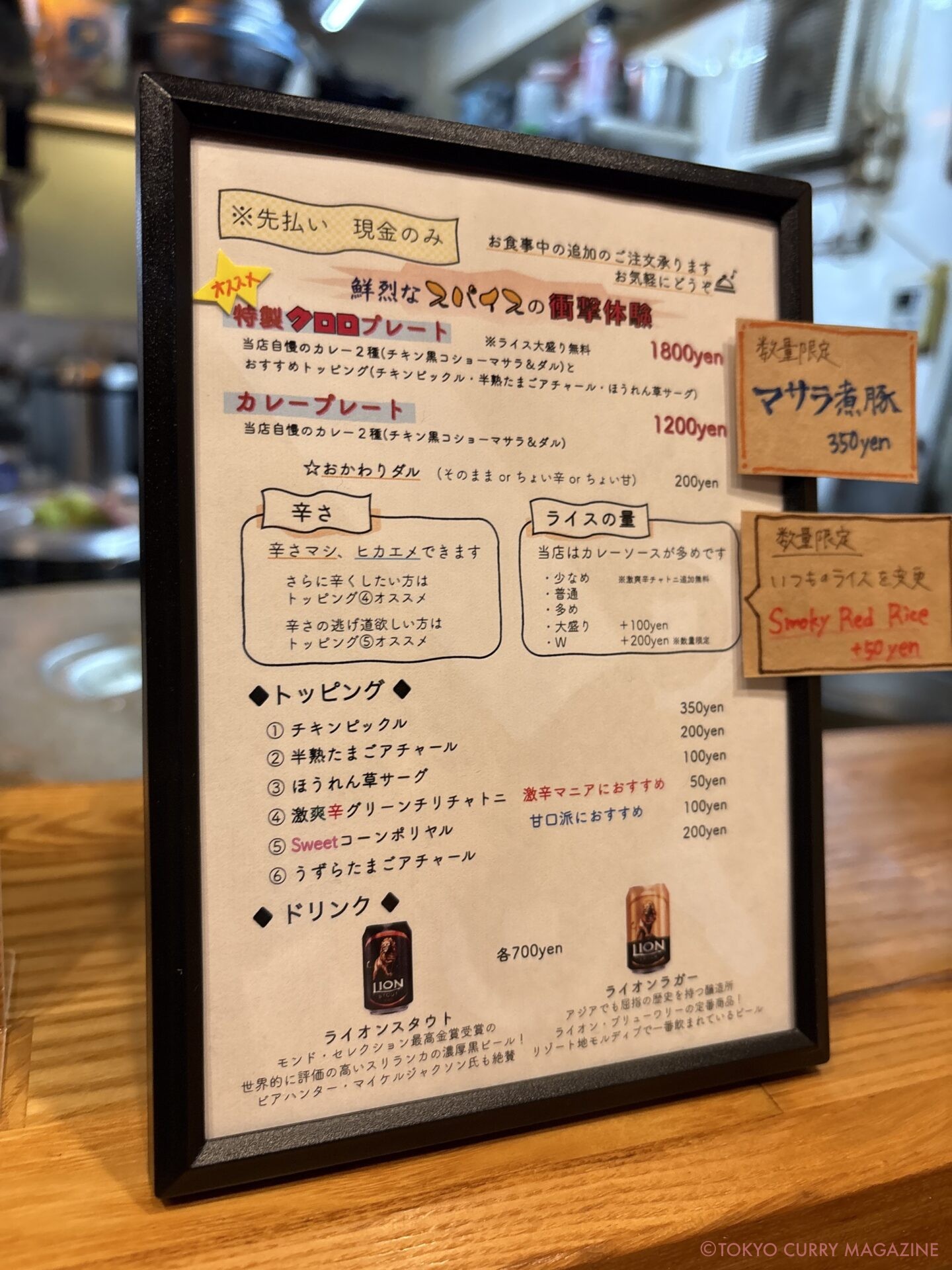 今回の私のいただいたメニューからも滲み出ているように、店主は元々野猿二郎で約10年働かれていた方。そこから、某有名南インド料理店での経験を積まれ、クロロを作られました。お話ししていて驚いたのは、現在間借り営業を行いながら、スパイス卸店でも勤められており、この花開くような鮮烈なスパイス使いと他のカレー店とは一線を画すトッピングの広がりの面白さは、店主の歩いてきた人生そのものを味あわせて頂いているんだなと妙に感慨深い気持ちになりました。11月現在、奥様の妊娠を期に12月で今の形態での営業が終了になるとのこと。今後どのような営業体制になり、どのようなカレーを作られるのか気になって仕方ない!間違いなく2025年最注目の新店の1つ。