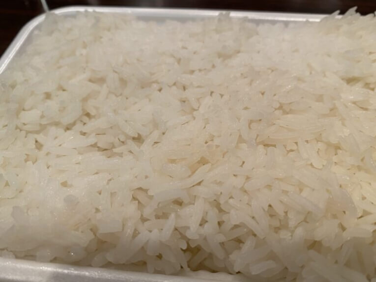 固さ、炊き加減もとっても好み。この乾いた固いジャスミンライスがサラサラなカシミールのソースに合うんです。このジャスミンライス、テイクアウトでも暖かかったんですが、いつかまたお店でホッカホカのジャスミンライスとカレーを食べたいなーと思いました。