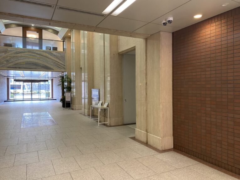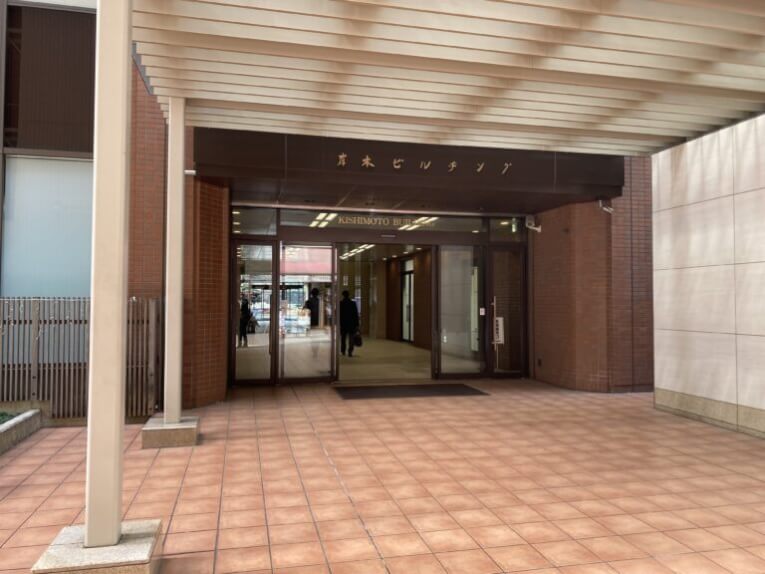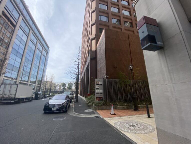 このビルを右に曲がると、ビルに入る入り口は左側に見えてきます。