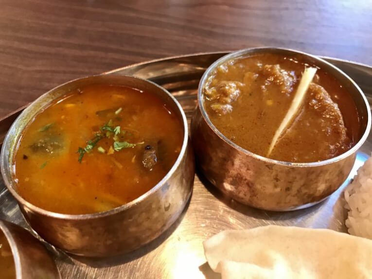 コラプーリマトンカレー(右)とサール(左)