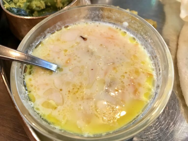 このデザートも本当に美味しくて、いつもこれが楽しみだったりします。ドライフルーツ入りのココナッツベースのマンガロール名物デザートで、ココナッツパヤサーというらしいです。細かく刻まれたタピオカに、ココナッツミルク、そこにクミンやカルダモンの爽やかなスパイスが加わって甘いのに、スパイシーな味がします。