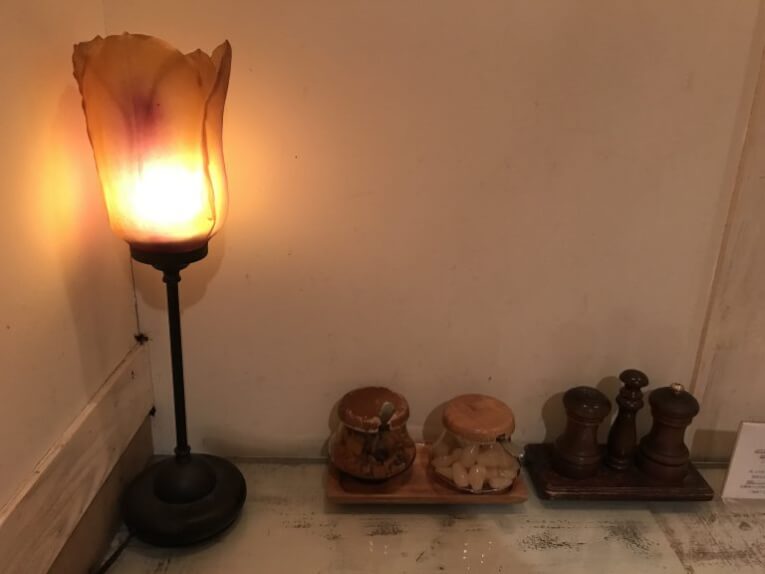 机の上には福神漬けと、らっきょが置いてあり、個人的にはとても嬉しいです。