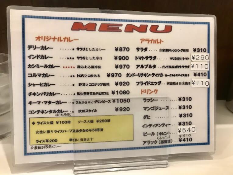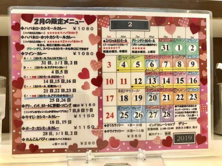 僕は1人だったので、今回は諦めましたが、新川デリーはメニューが豊富でカレーの種類だけでも8種類もあって、さらにスケジュールの組まれたスペシャルメニューもあります。