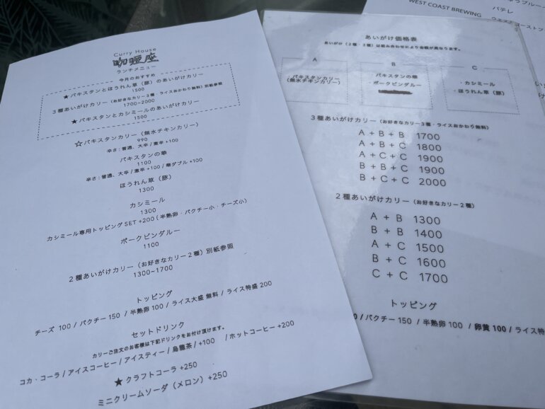 あまり食事時にビールとか飲まないので今回は注文していないのですが、咖喱座にはたくさんのクラフトビールが用意されていて、他のお客様がテラス席で飲んでいるクラフトビールがとてもおいしそうでした。