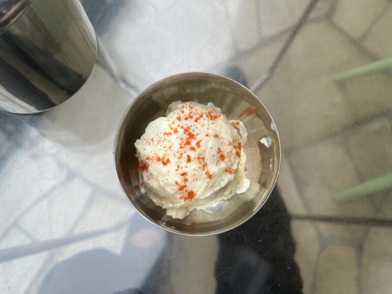 今日は少し曇り空だったので湿度のある風をテラスで感じながら
