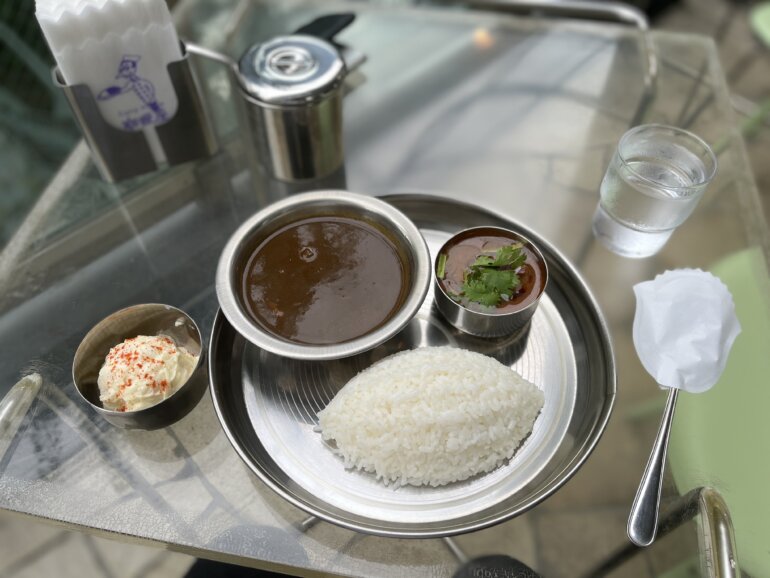 スープを一口食べてみるとさらさらとした質感の中にも少しざらざらとした質感も混ざって濃厚なカシミールでした!ウスターソースのような酸味もうっすら感じて日本米に合う!とてもおいしかったです。次回は単品で堪能したいですね・