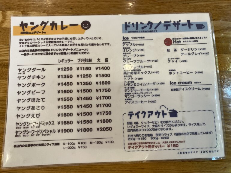 お値段少し高め設定のようにも思いますが、野菜の量を考えるとCP相応と思っていたのですが、さらに・・・好きなドリンク、アイスを選ぶことができるんです。今回は2人でいっていたのでマンゴーラッシーと本日のアイスを注文。