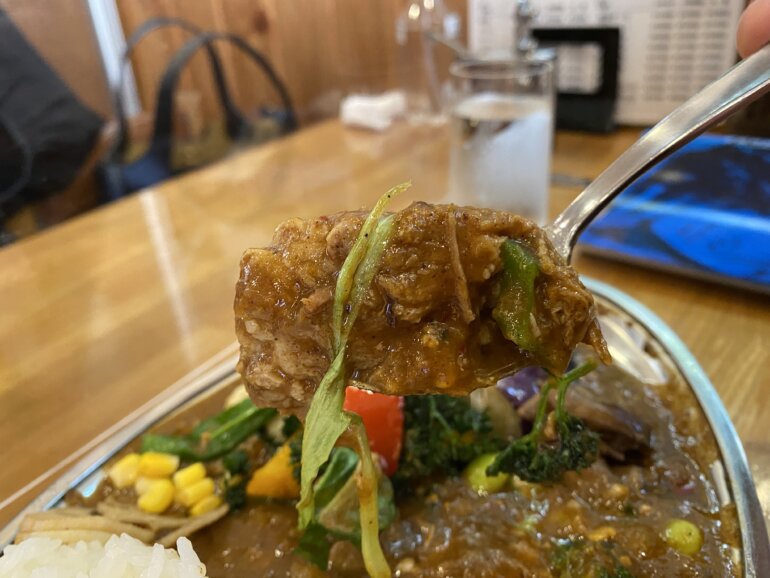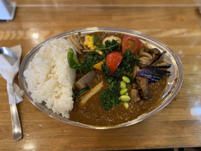ソースの方は野菜と果物をベースに20種類近い香辛料を使用していて、油も使っていないそうです。鰹節、昆布、椎茸から出汁をとっているようで日本人が好む味わいと、塩分も控えめで体に優しく、しかし物足りなさなどは全く感じず、おいしいカレーです。
