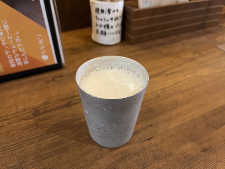 ランチタイムはドリンクセットが150円とお得で、自家製ラッシーまで頼めちゃうとのことでお願いしました。