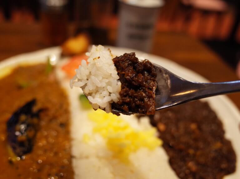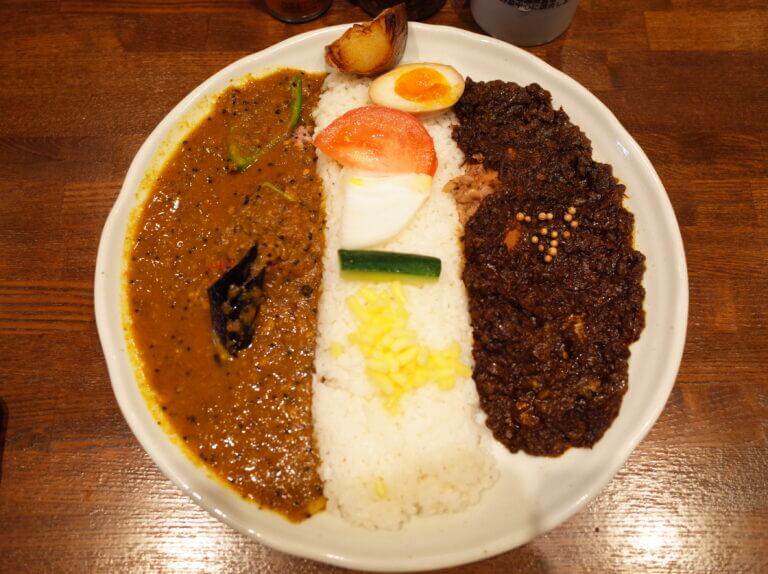 ディープオニオンカレー&ホールスパイスの2種盛りをオーダー!