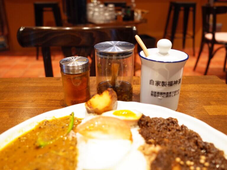 今回は気になっていたホールスパイスカレーとディープオニオンの2種盛りカレーにしました!19時すぎだったんですぐが、この時間は店内は他にはお客さんがいなかったです。