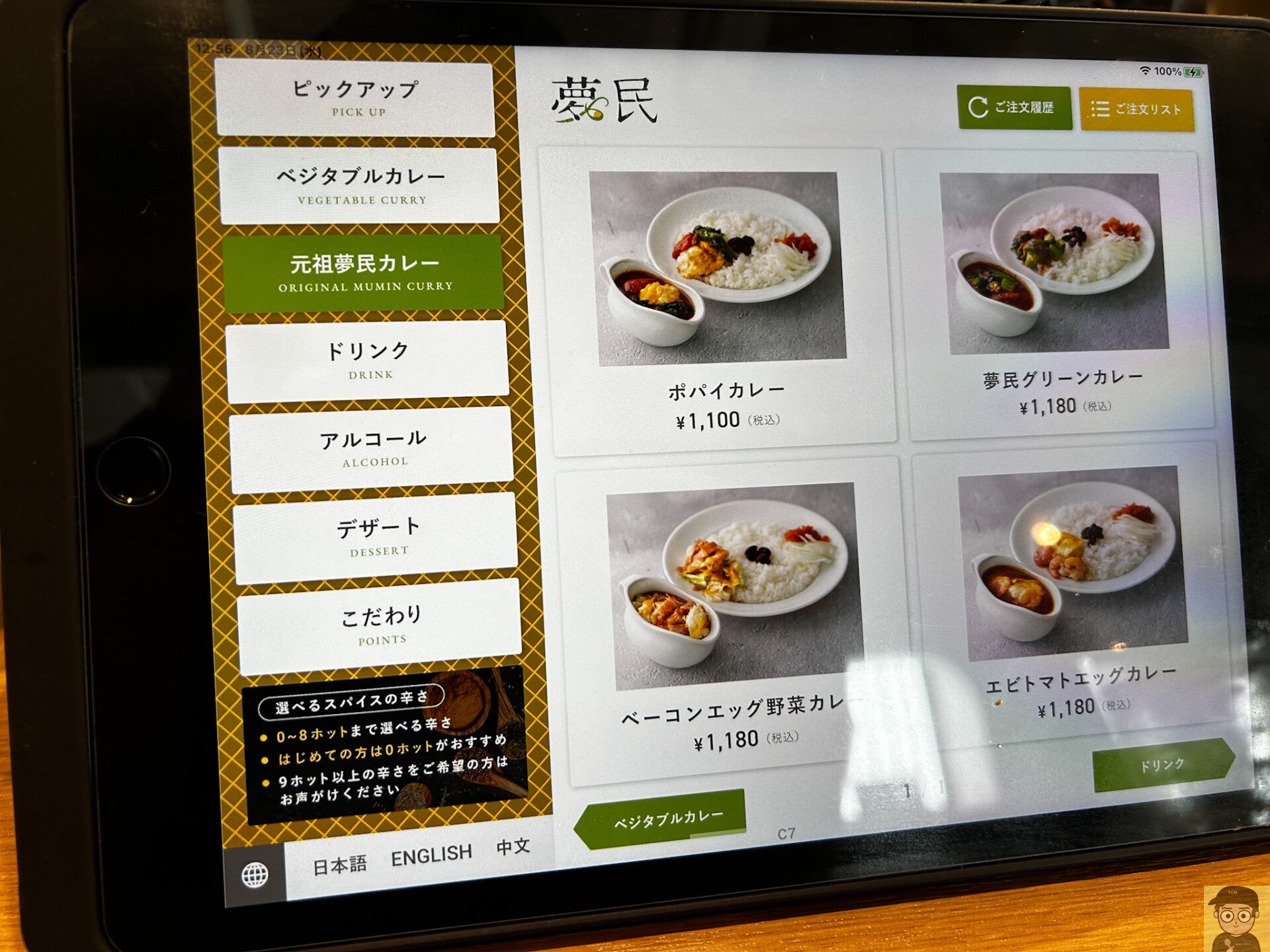 カウンター席に着くと、全席に用意されているタブレットで注文をします。