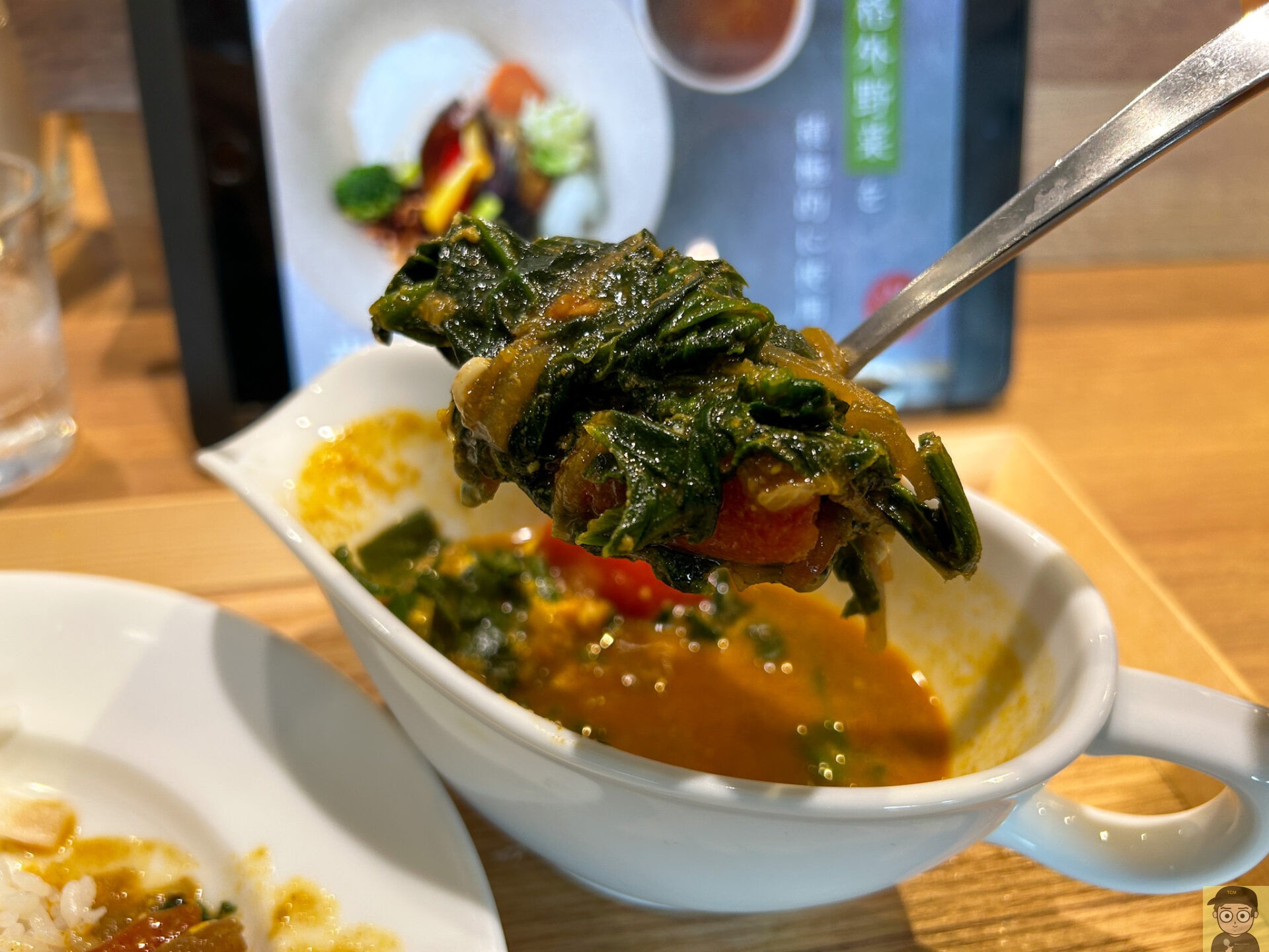 そして野菜がたくさん入ってます。トマトに、ほうれん草、旨味がえぐい。