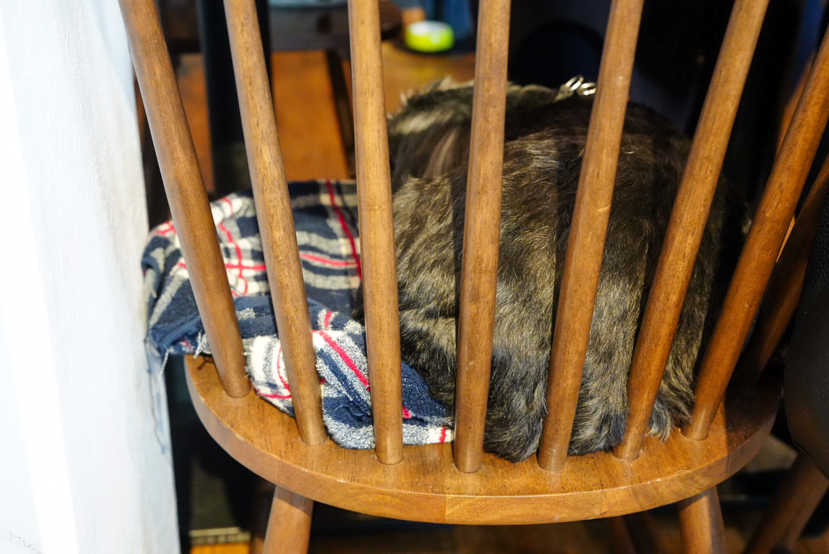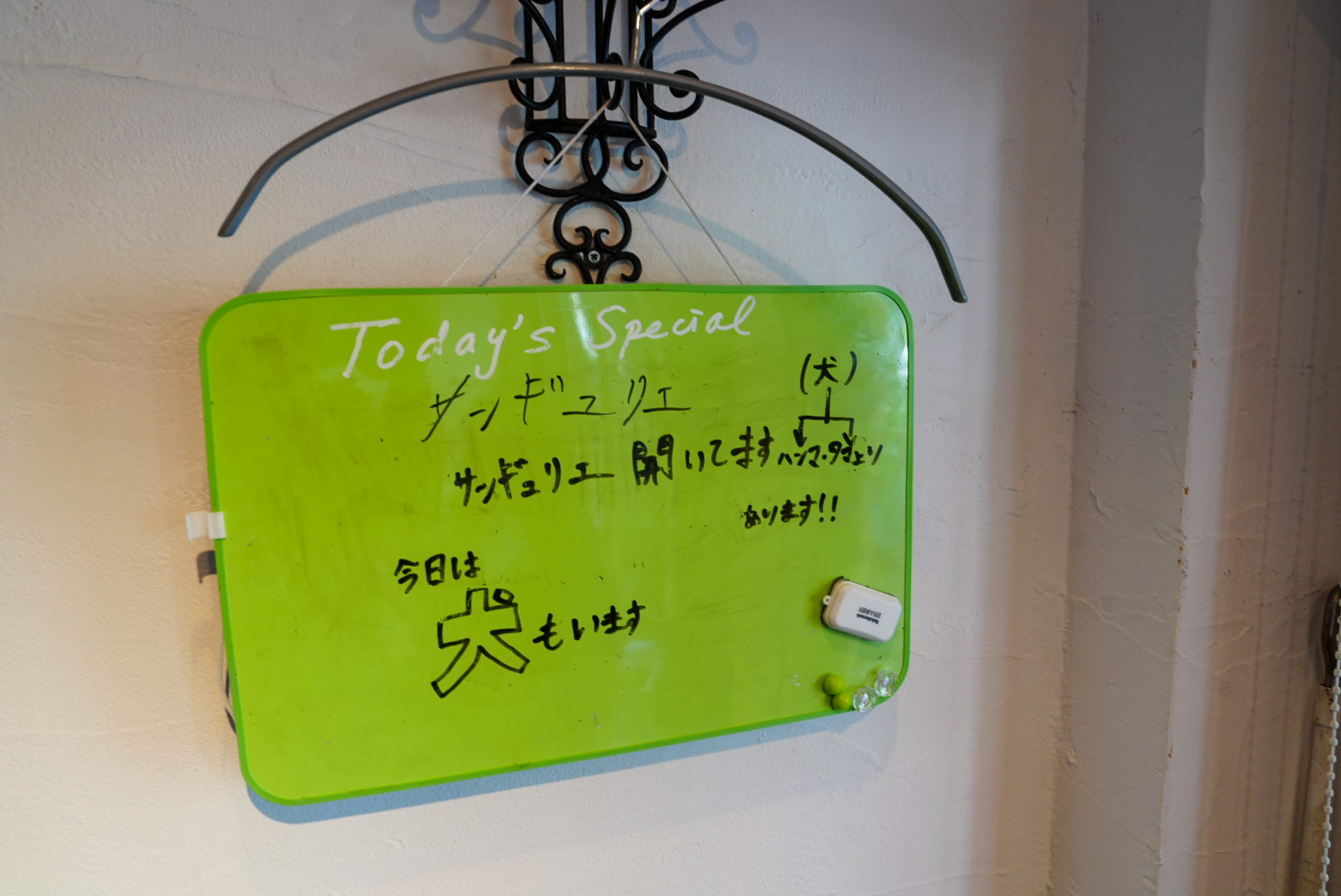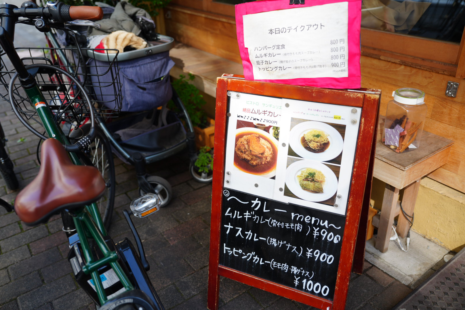 犬もいます。とのことでどこにいるんだろう・・・と探していたら、なんとテーブル席のお客さんと相席で寝てました(笑)もう1匹はお店の外でカートの中で寝てます。