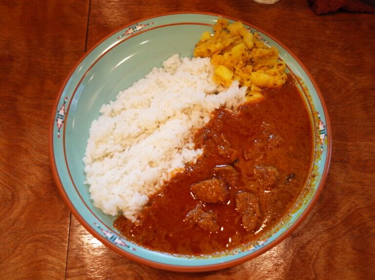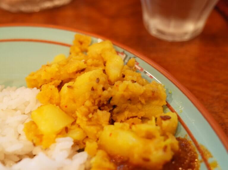 そして付け合わせのじゃがいもホクホクの後に、少し乾いて粉吹いたぐらいのおいしいジャガイモでした。そして、このジャガイモをカレーと一緒に混ぜて食べてみたらこの組み合わせも最高でした。