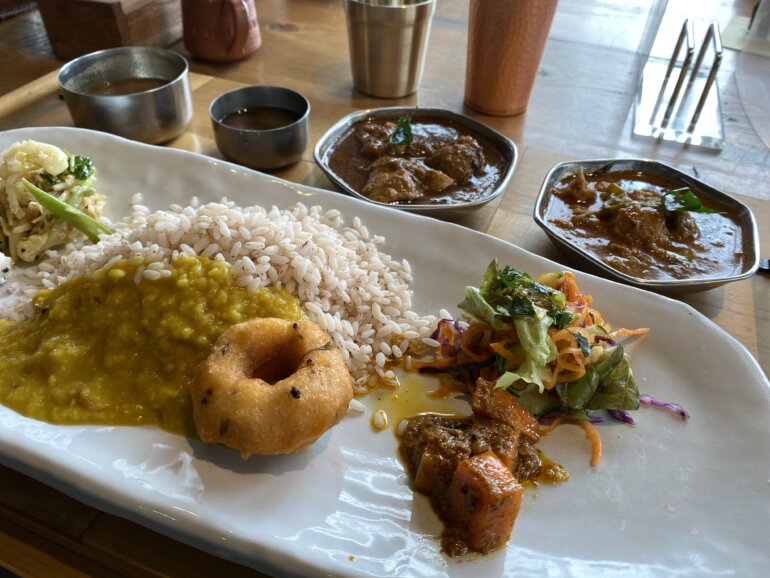 友人はいつも頼むというベジミールス!僕は悩んだ挙句に本日限定だった「イカと鱧のケララスタイル」を選択。他にももちろん牛肉などの肉類も選ぶことができます!