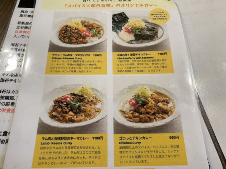 店主のしんちゃん(敬称略)は地域密着型の経営をされている方で、大森町は実は「大森海苔問屋街」(http://www.nori-tonyagai.com/)で専門店が多く、海苔が有名なところだったのです。しかし、なかなか東京で海苔が有名と言われてもピンときません。今回のように「カレーに海苔?」って思わないとそこに疑問は思わないわけです。それで店主のしんちゃんは海苔を使うことで大森町=海苔ということを知ってもらえたらと思っているのだと思います。
