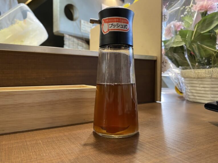 味変したい方におすすめなのが、こちらの「自家製香草入りビネガー」カレーにお酢をいれたことあまりないかもですが、これもおすすめです!僕は例の代々木のお店でも体験しております。こちらを熱々のおかわりしたスープに2〜3プッシュすると、ビネガーが熱々のスープで酸味が蒸発し、まろやかで、そしてさっぱりとおした味わいに変化します。ぜひチャレンジしてみてください!