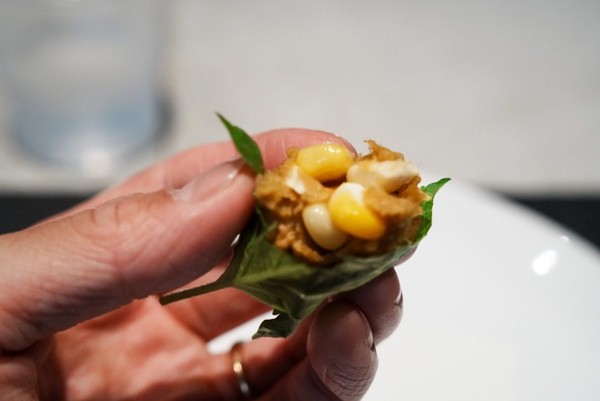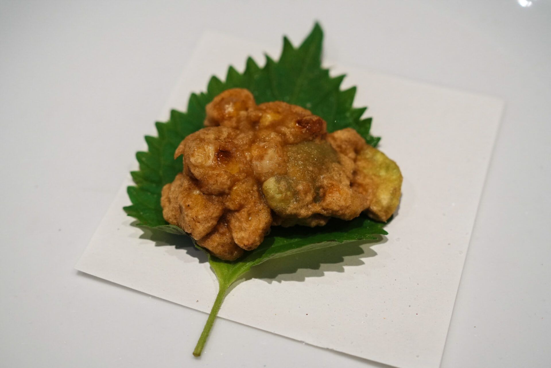 季節の野菜ということで、水々しいとうもろこしと、しっとりした味深いそら豆の食感が楽しい1品。