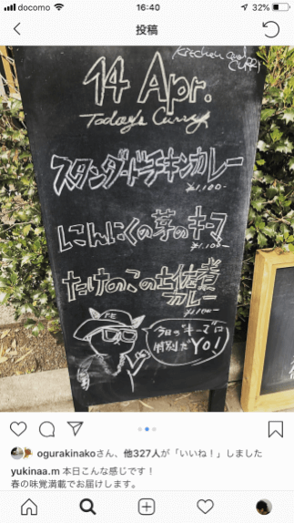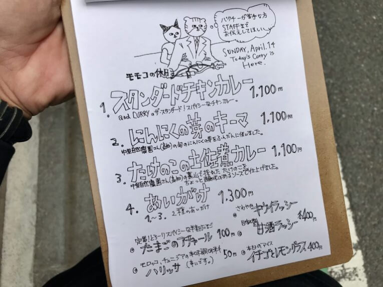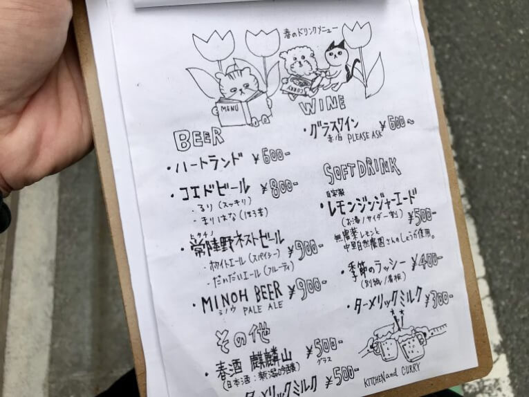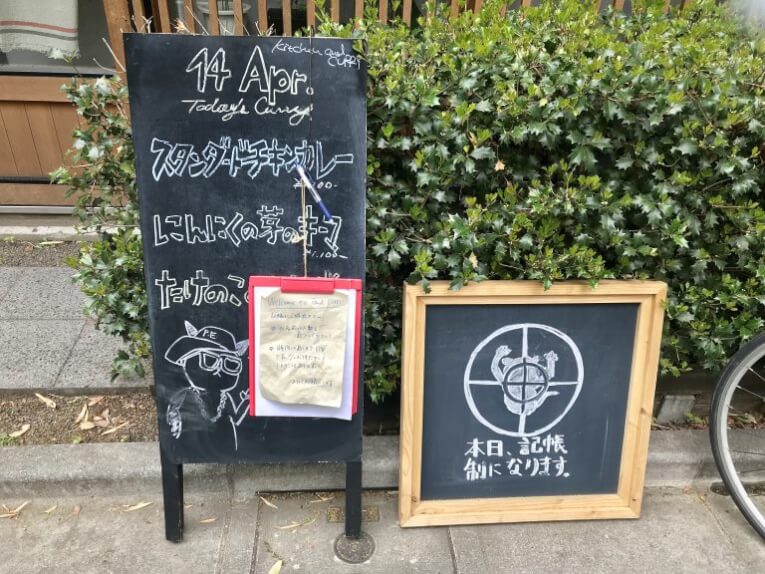 kitchenandCURRYは閑静な住宅街に店舗があり、行列ができてしまうのを避けるためか、記帳制となっております。11:20ぐらいにお店に到着したのですが、すでに11:30〜のリストと、12:00〜のリストがたくさんの人で埋まっていたのですが、なんと運良く11:30〜のリストに1名分の枠が空いていたので、11:30〜のOPENと同時に入れることになりました。