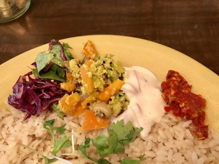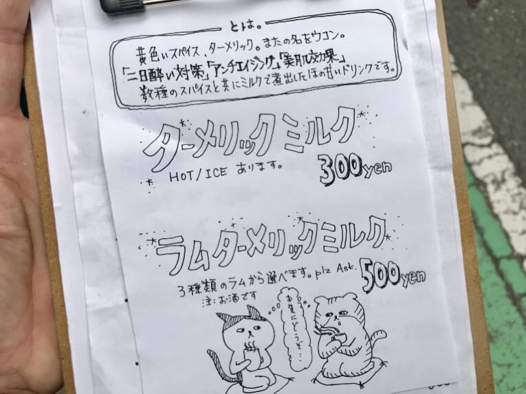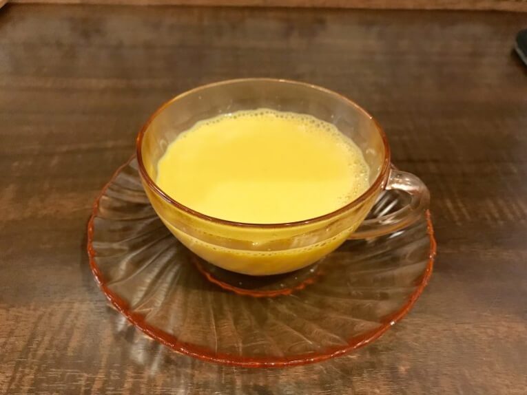 〆にターメリックミルクをいただきました。適温に温められていてうっすらとターメリック色です。上記と一緒にスパイシーな香りがあがってきて、落ち着きます。