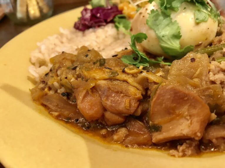 美味しく煮込まれていて、味わい深いチキンカレーでした。玉ねぎの甘みが食を刺激します。