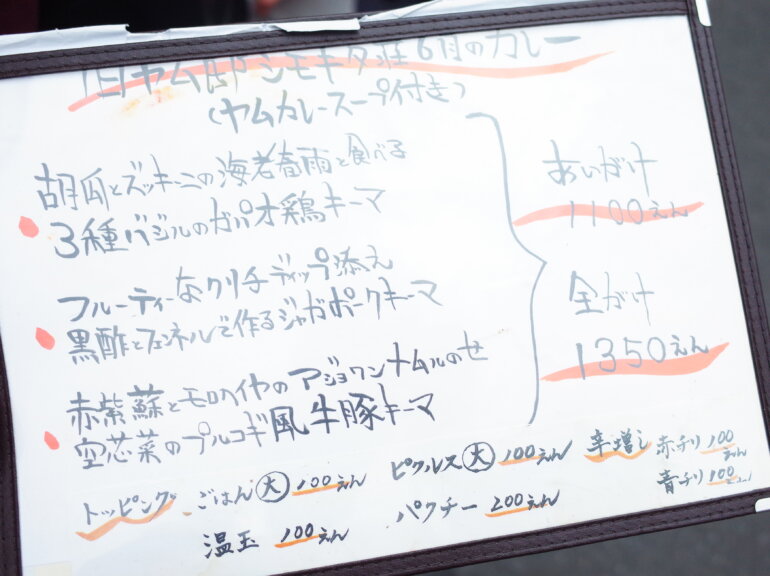 旧ヤム邸下北沢はお客さんもたくさん並びますが、記帳制の時は店頭にあるボードに名前と人数を書いておけば、店員さんが目安の時間を教えてくれます!
