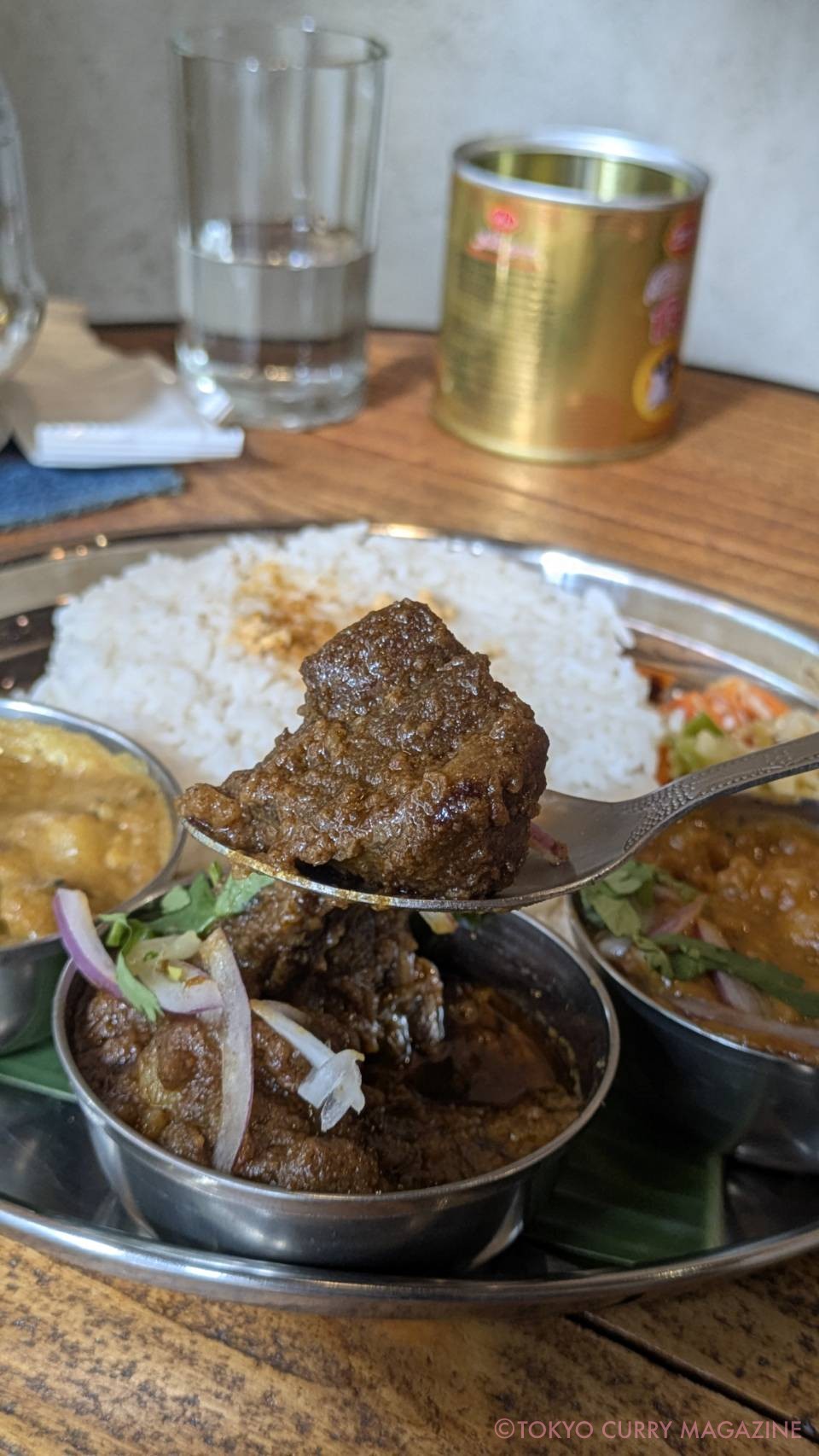 対して、マトンコランブはココナッツベースながらグレイビーはオイリーかつコク深い仕上がり。ゴロっとしたマトンは食べ応えがありながら、重すぎず絶妙なバランス。間違いなく今日の主役!