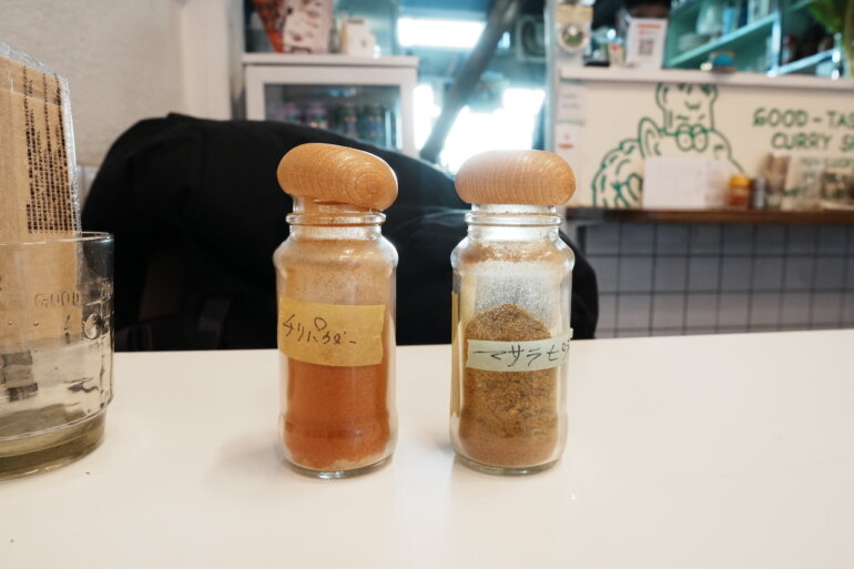 辛さが足りない方は卓上にあるチリパウダーとマサラ七味がおすすめ。少し辛さを与えつつ、マサラ七味がちょうどいい味変になり、最後まで飽きずに食べることができた。