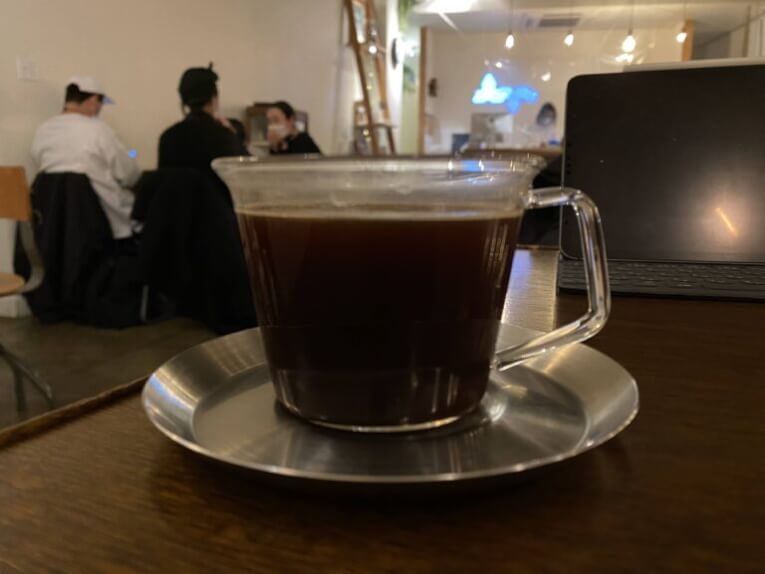 店内はお客さんが多かったので写真は撮らなかったのですが、HOSTELのカフェラウンジっぽく、まるでヨーロッパのゲストハウスに宿泊しているような気分になる空間でした。お客さんもおしゃれな方が多くてキョロキョロしちゃいました。コーヒーもKINTOのガラスカップで、これまたヨーロッパテイスト!