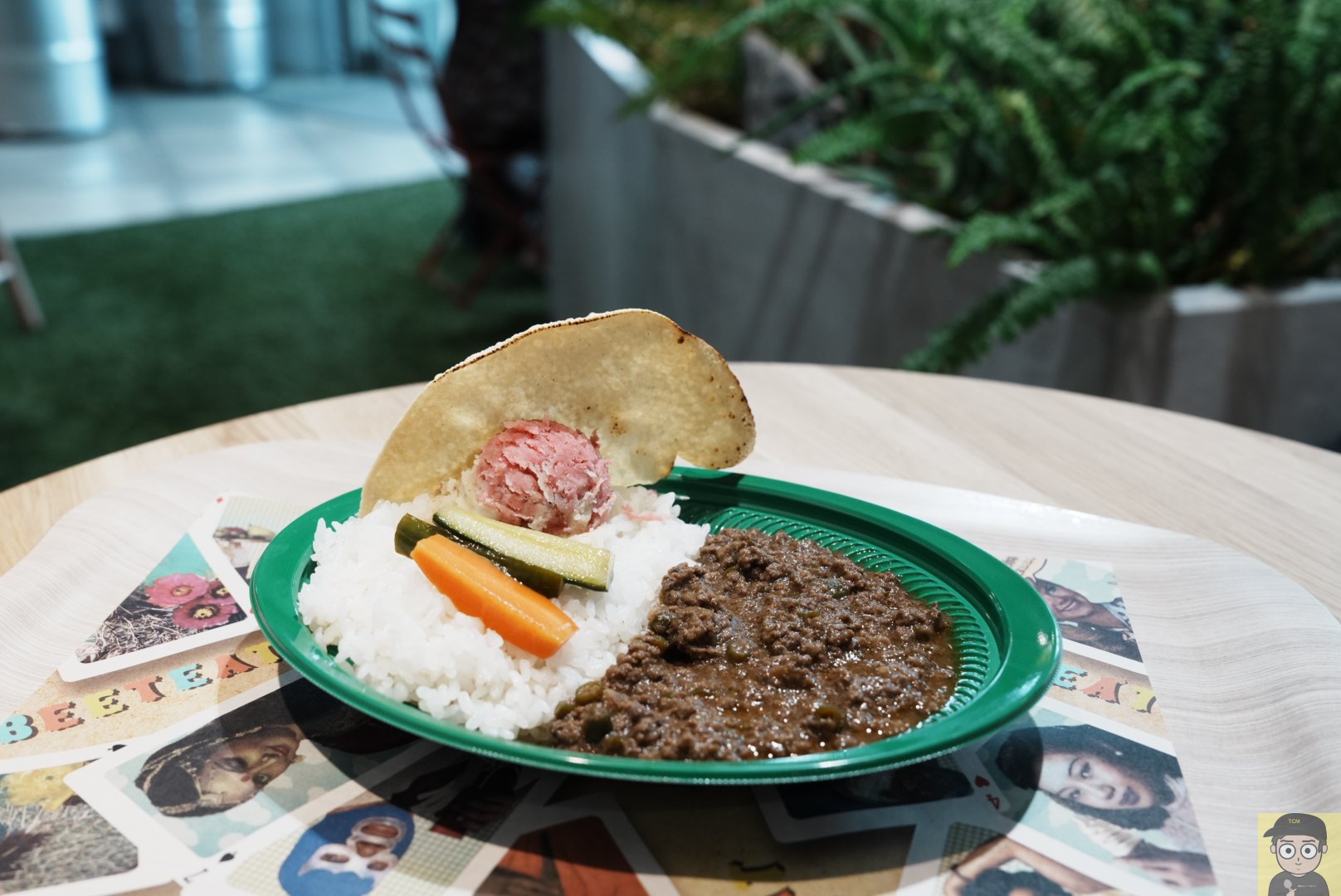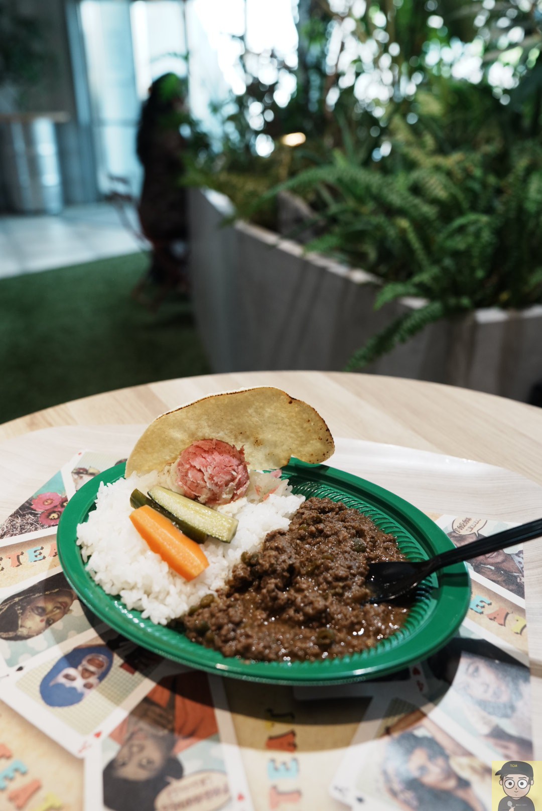 フードコートらしく、提供はプラスチック容器ですが、グリーンの色合いや細部のディテールが印象的で、実用的でありながらもスタイリッシュに感じました。