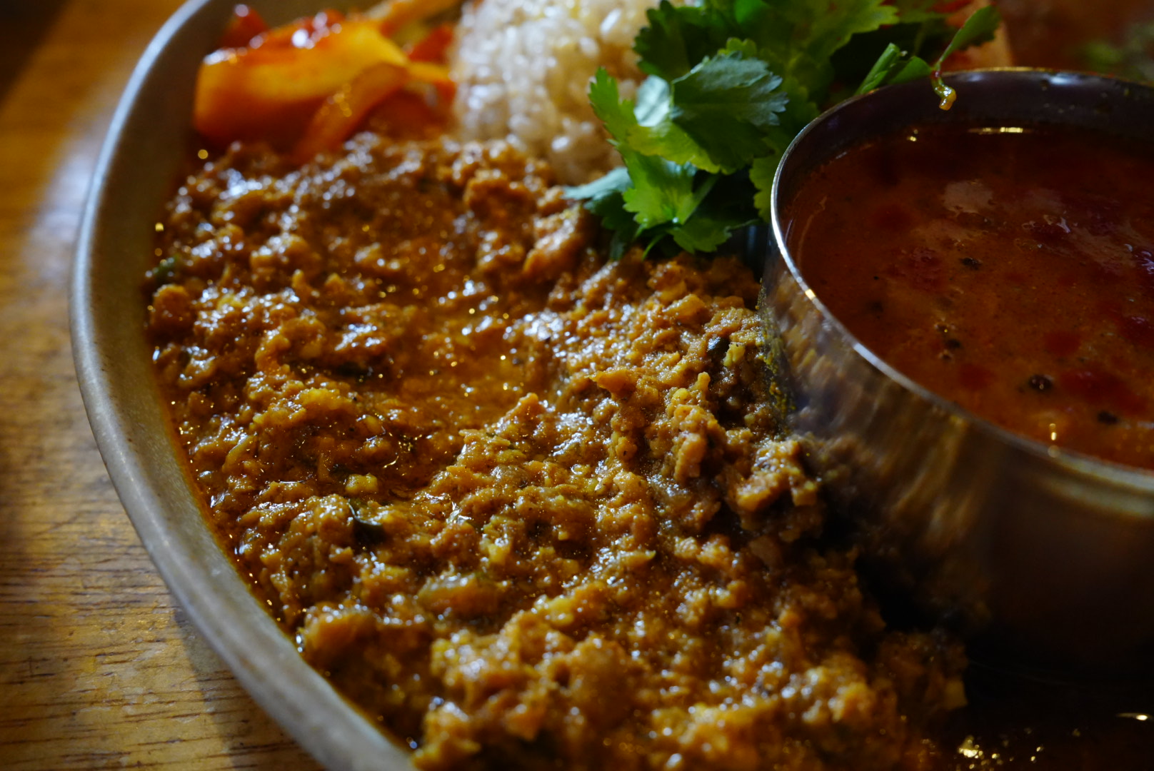 バターチキンのキーマカレーって初めて食べました。まろやかな味わいはたっぷりのギーに生クリーム、カシューナッツでコク深く仕上げられている。バターチキンといえばナンしか勝たん!と思っていたけど、アンダーソンでは断然お米がマッチ!