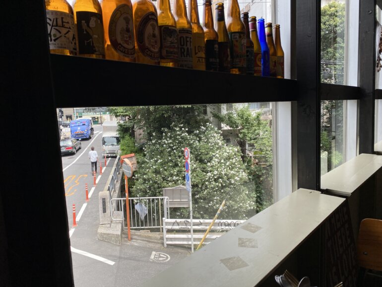 決して広くはない店内ですが2人がけのテーブルが4つほどあり、壁一面の窓から見える交差点と、渋谷川にうなだれる緑はとてもリラックスした時間に感じられます。
