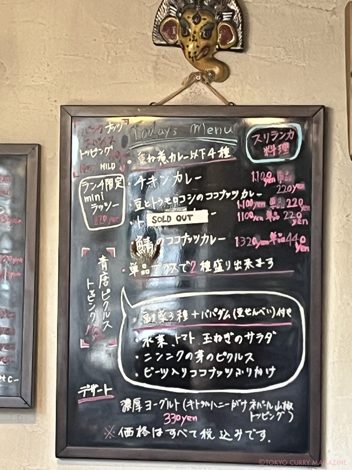 基本のチキンカレーと限定の鯖のココナッツカレーのあいがけを注文。
