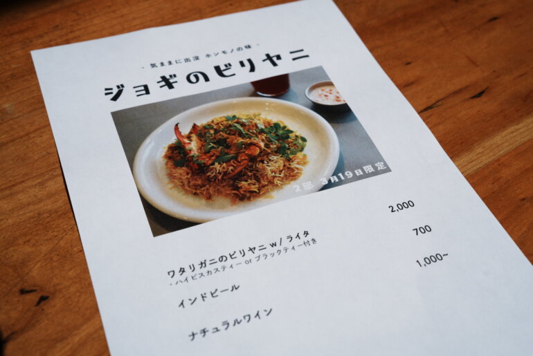 イベントは2部制になっており、1部は12時〜ラムのビリヤニ、2部は13時〜ワタリガニのビリヤニ。僕はワタリガニのビリヤニを食べたかったので、13時のを事前に予約。