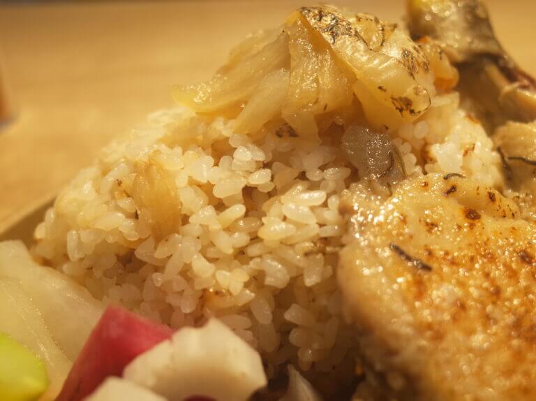 秋田県大仙産の一等級米を玉葱と共に炊き込む玉葱ライス、たっぷりの野菜が使われています。