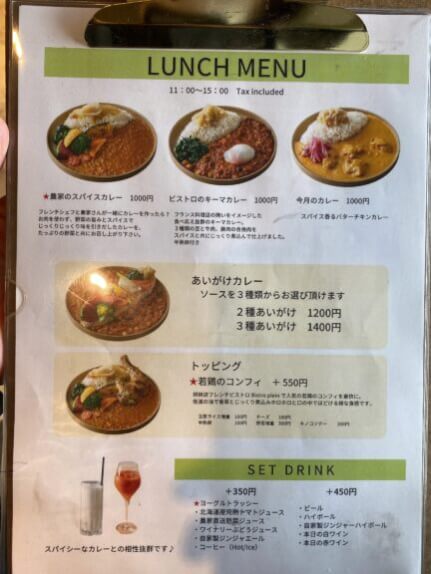 さらにあいがけカレーや、トッピングに若鶏のコンフィなどおいしそうなトッピングが豊富です。
