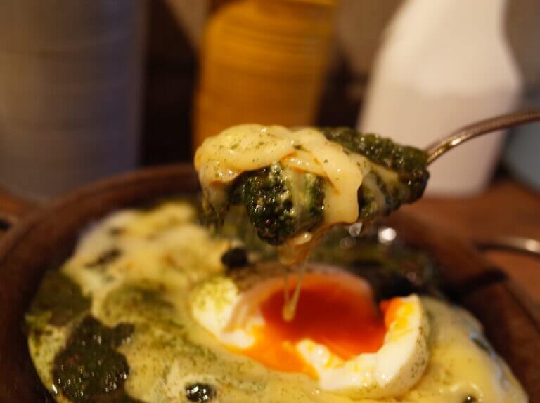 こちらはご飯とも合うのはもちろんですが、ソースだけ食べるのもなかなか乙な一品。とろけたチーズはまろやかなほうれん草カレーをさらにまろやかにしてくれて、おいしかった。