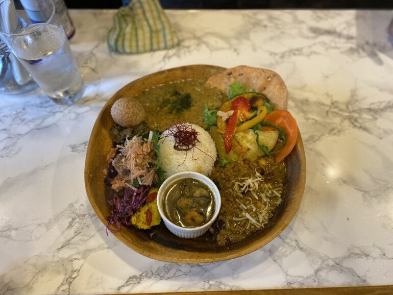 僕はコラボプレートと、せっかくなので鯛出汁スリランカ風キーマをお願いしました。