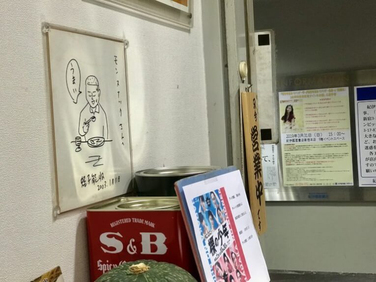 モンスナックの店内には有名人の色紙がたくさん並んでいます。