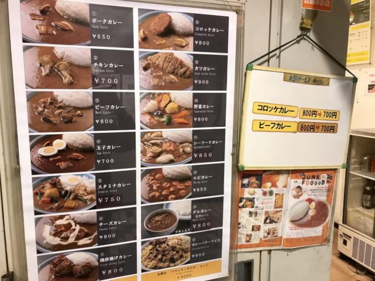バラエティ豊富なメニュー(本日のサービスはお得ですね)ダルカレー、カレーバターライスといったものもちょっと気になりますが