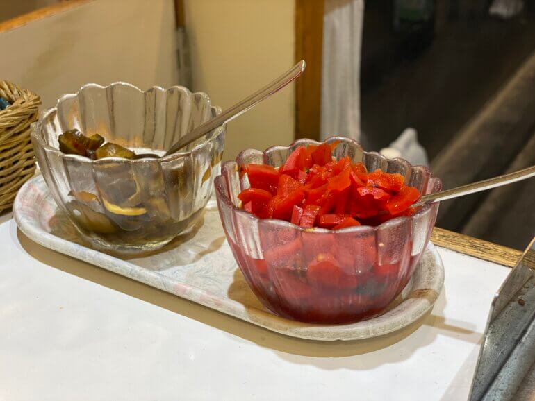 カウンターに座って注文をすると数分経って目の前に横にながーい深みのあるお皿でカレーがやってきました。ちなみに欲張って大盛りにしました。+100円のこのボリュームに大満足です。卓上には福神漬けと漬物があります。