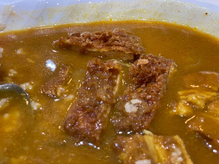 こんなにシャバシャバなソースの池の孤島のようにライスがあるのに、崩れない・・・すごくないですか