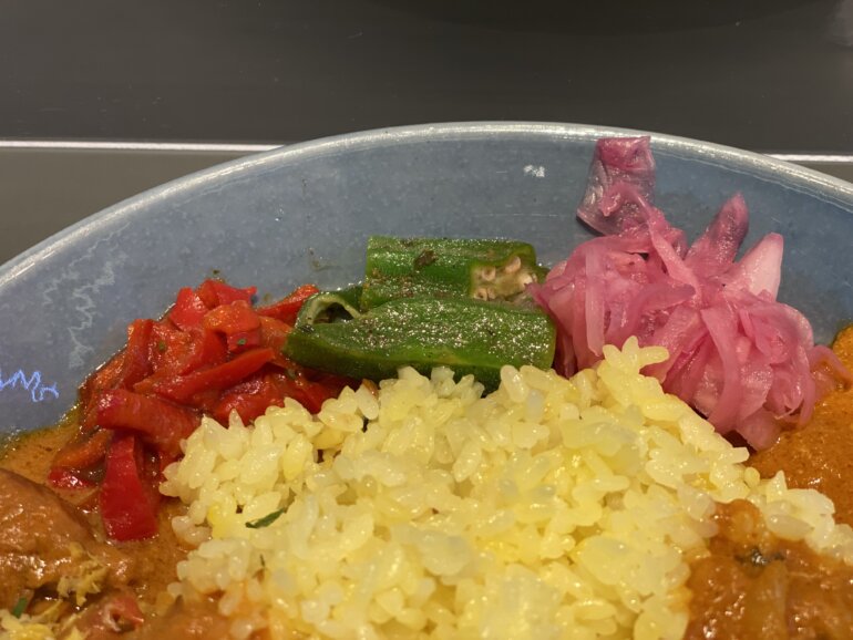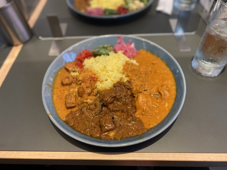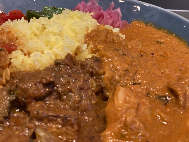 選んだのはバターチキンカレー、帆立と檸檬のカレー、そしてベジからゴーヤーと厚揚げのスリランカ風カレーです。