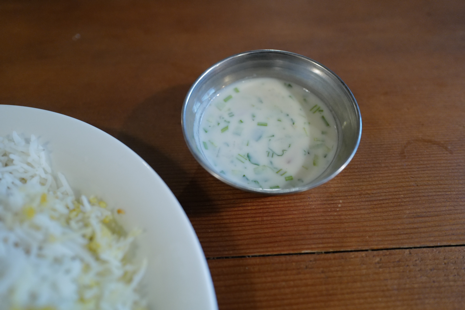 半分ぐらい食べ進めたところでライタを投入すると、またガラっと印象が変わります。まろやかなライタがビリヤニのスパイスな部分を引き立ててくれます。