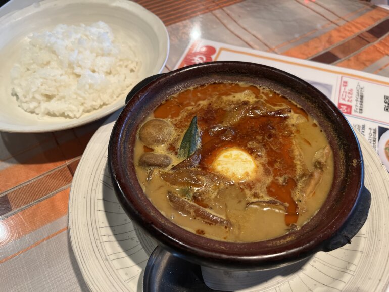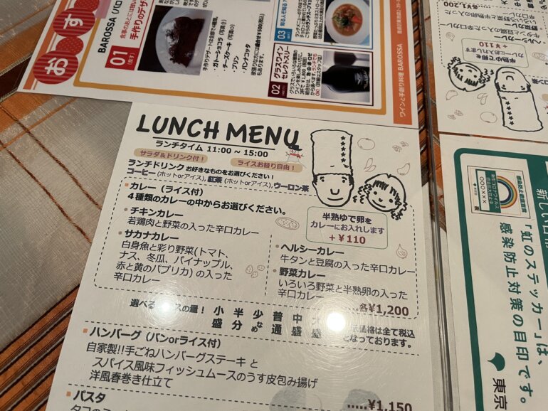 店内が少し外国のレストランのような雰囲気もあり、メニューを眺めているとサカナカレーがめっちゃ気になります・・・スタッフの方に、おすすめを聞いてみるとチキンカレーがよく出ているとのことで、初めてのお店なのでここは従順にチキンカレーと半熟ゆで卵をお願いしました。
