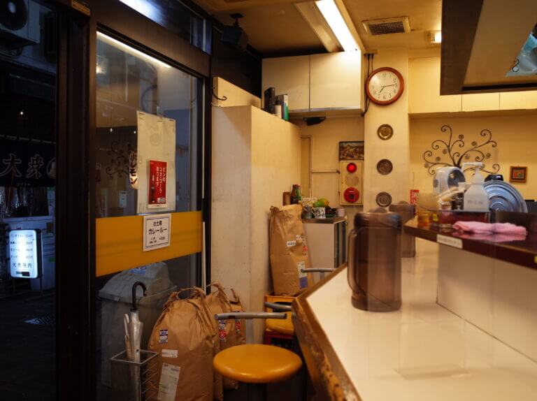 店内を見渡すと、オクタゴンのようなカクカクとしたコの字型カウンターになっています、もしかしたら2階もあるのかも?お客さんはサラリーマンのような男性客や学生さんが多かったです。女性は少し入りづらい雰囲気あるのかもしれないですね。窓のところにはお米がたくさんあったのですが、国産なのか確かめたかったのですが、味だけで判断すると、お米も美味しく感じました。